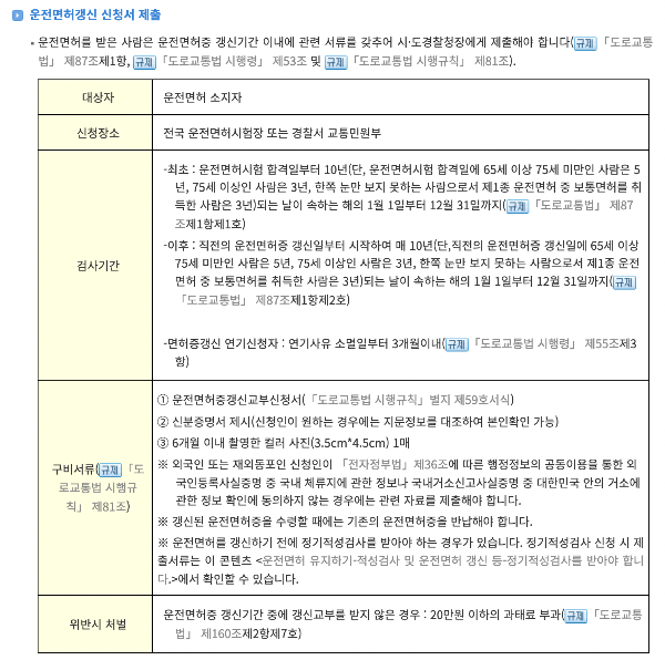1. 운전면허 갱신 대상 및 갱신 주기는?